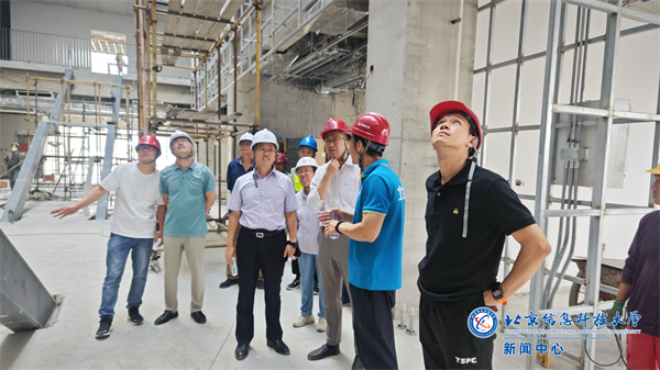 叶向忠先后检查了北校门及形象墙、图书馆工学楼及其周围小市政、园林工地,详细了解了建设进度和难点工作。叶向忠强调,北京目前已经进入汛期,近日暴雨天气增多,各项目要做好防汛准备,打好提前量,减少特殊天气对施工进度的影响,继续发扬不惧酷暑战斗一线的精神,在保证施工安全的情况下,保质保量完成建设任务。叶向忠强调,图书馆工学楼、北侧形象墙沙河校区的重点工程,要确保提前完工,保证毕业季和新学期开学的正常使用。他还叮嘱施工单位,要认真落实高温户外施工相关规定,加强安全生产管理,注意防暑降温,以良好的精神状态投入工作,顺利完成项目建设任务。