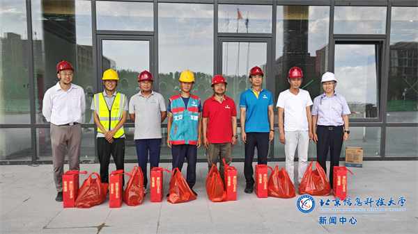 叶向忠代表学校党委向在施地管理人员和工人代表赠送了防暑降温物品。