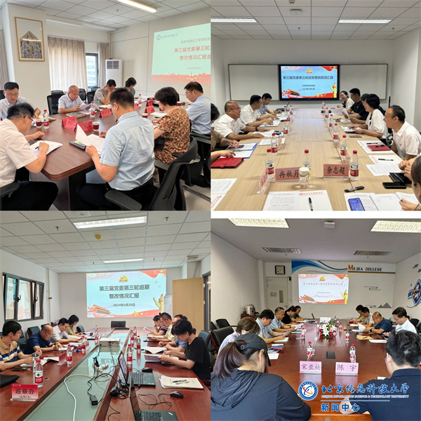 第三届党委第三轮被巡察的信通学院党委、计算机学院党委、信管学院党委、公管传媒学院党委主要负责人分别从推动巡察整改组织实施、解决问题实际举措、目前取得工作成效、存在的工作困难以及下一步的工作计划等方面进行了详细汇报。