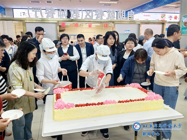 上午11时,校党委书记解江凌,校党委副书记、校长郭福,校党副书记于世洁,校党委常委、纪委书记辛红光,校党委常委、副校长叶向忠,校党委常委、副校长肖志松,校党委常委、宣传部部长杜世智,校党委常委、统战部部长牛志英在相关职能部门负责人陪同下,来到沙河校区第一食堂为广大教师送上节日祝福,并与大家一起品美食、吃蛋糕,共度教师节。