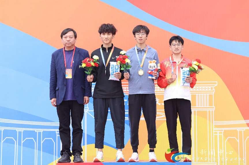 光电学院郭昊天:乙组男子5000米冠军(成绩14:59.29)、乙组男子10000米冠军(成绩:31:08.86)