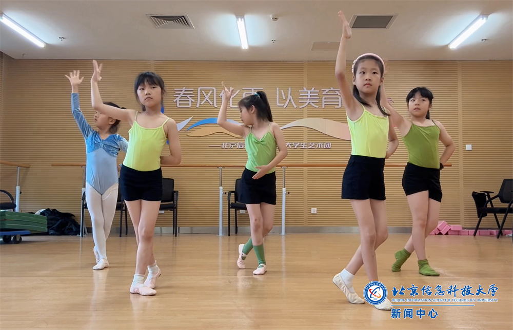 舞蹈课堂内,小学员们对着镜子舒展身姿,认真练习舞蹈动作。