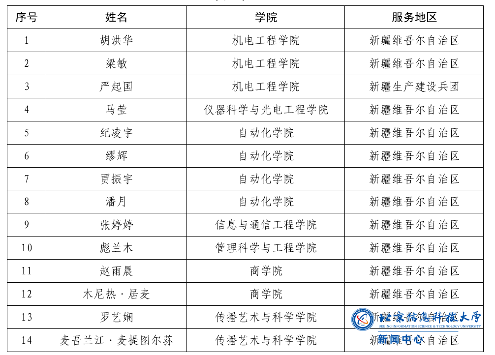 经过自主报名、综合考察和市级审核等多个环节,我校14名志愿者脱颖而出,成功匹配岗位成为光荣的西部计划志愿者,奔赴新疆维吾尔自治区和新疆生产建设兵团,投身于祖国西部建设。