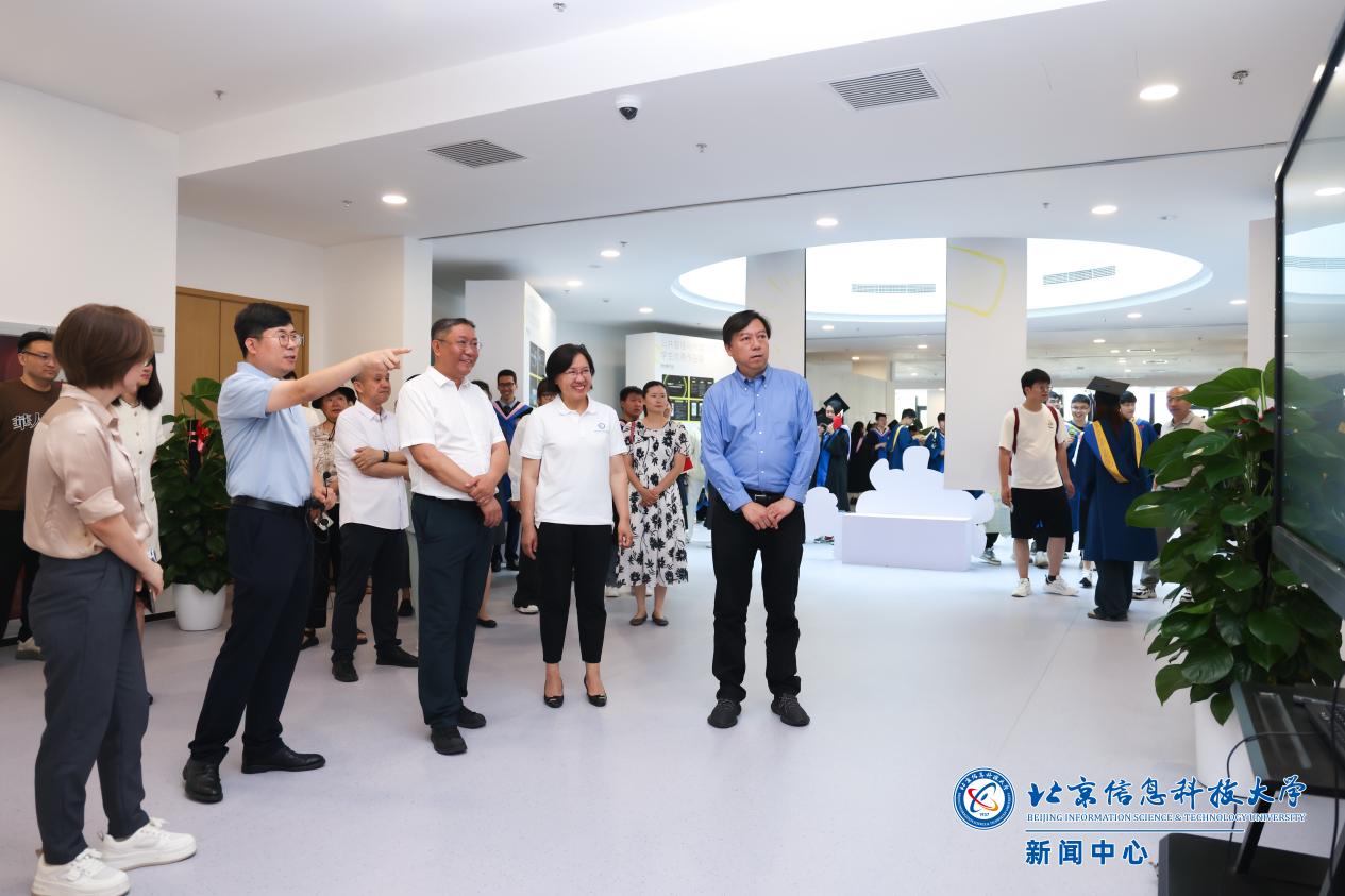 观展过程中,校领导对毕业生们的创新作品给予高度评价,特别对作品中展现出的“科技+艺术+人文”跨学科特色表示充分肯定。围绕优秀作品展工作,校领导强调,要深化“新文科”建设理念,加大学院相关专业与智能交互设计等专业的交叉融合,推动传媒艺术与信息科技的深度融合;打造具有信息科大特色的传媒人才培养体系,持续优化教育过程评价;充分发挥毕业展的示范效应,将其打造成为展示学校教育教学改革成果的重要窗口。校领导指出,公管传媒学院要立足学校信息特色,通过艺术与科技的交叉创新,既为学校“新文科”建设注入新动能,又为校园文化建设提供高质量的内容支撑,最终实现人才培养、专业建设与服务社会的协同发展。