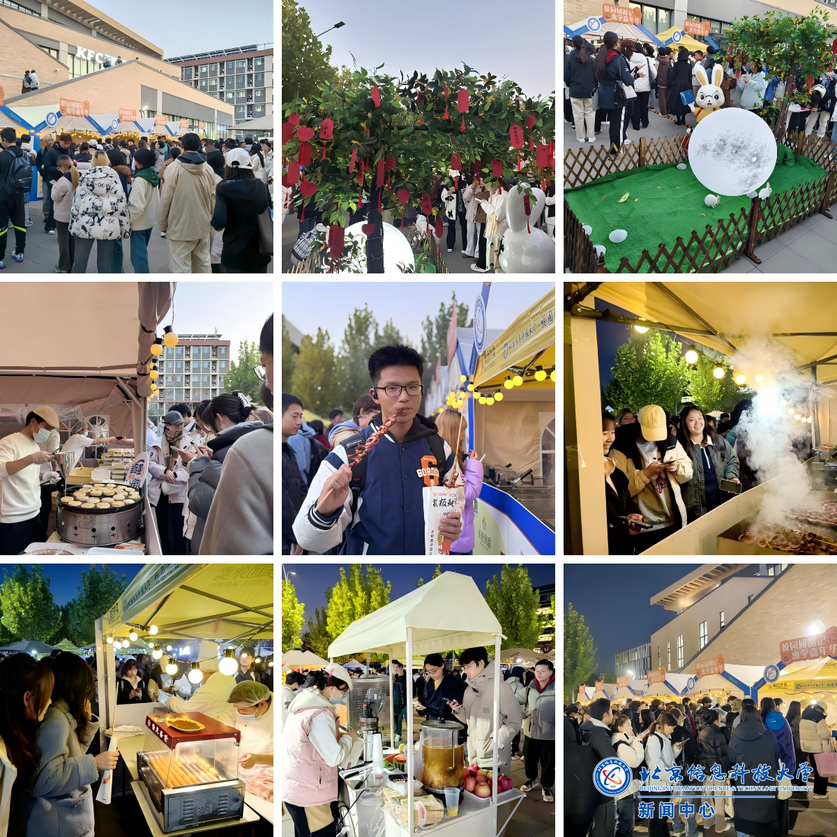 潮流美食区设置温馨“月宫”,软萌的小白兔与挂满祝福的许愿树相映成趣。八个美食摊位汇集汉堡、烤鱿鱼、肉蛋堡等40余种美食,同学们结伴品尝,兴致盎然。“下课就和室友约好来打卡!”管理学院王同学举着烤鱿鱼笑道,“边吃边聊,这样的活动真是爱了爱了。”