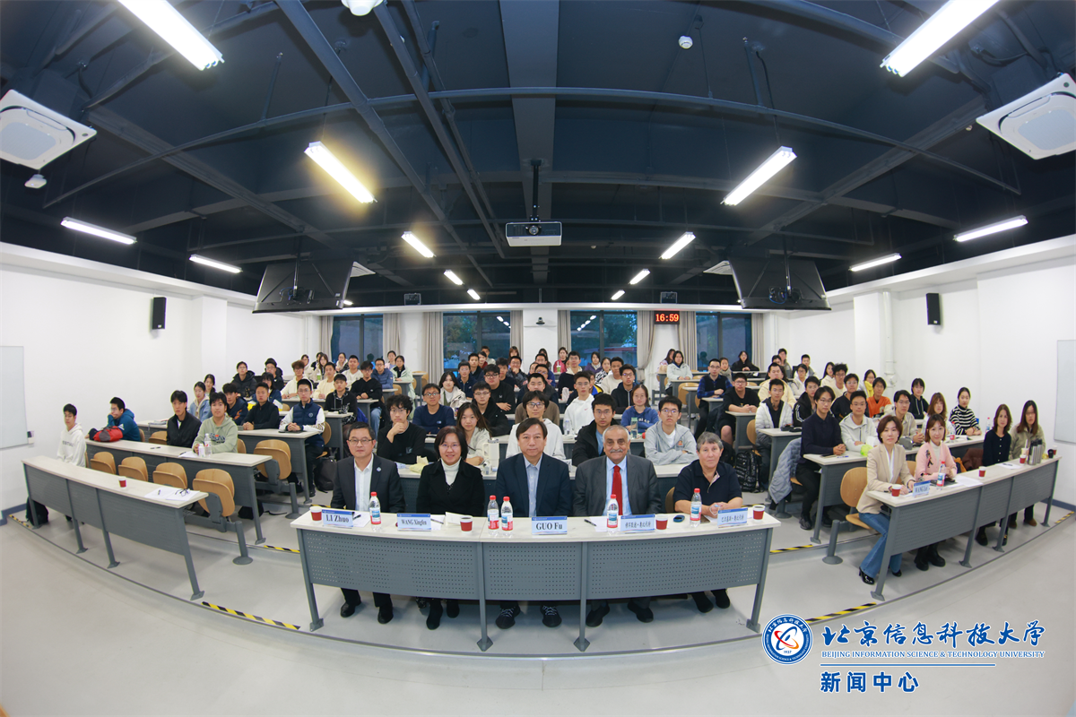 11月6日,勤信荣誉学院“荣誉科技论坛”第五期活动在沙河校区信息楼举行。本次活动特邀IEEE终身会士、全球前2%科学家、国际知名学者、约旦大学Mohammad S. Obaidat教授来校授课。校党委副书记、校长郭福,校党委常委、副校长王兴芬,与全校近百名学子一同聚焦人工智能领域的前沿趋势与核心挑战,为新生研讨课实践注入国际化学术活力。