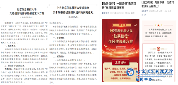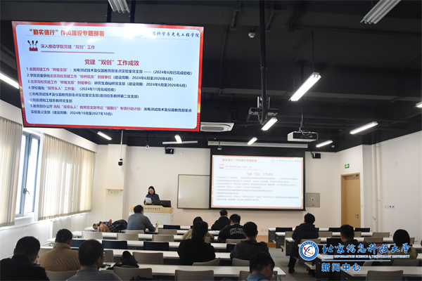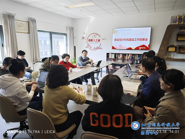 一是聚焦谋划设计,上下联动强落实。学校紧扣“勤实信行”主题,细化分解重点任务,一体推进党风政风、师德师风、校风学风建设,系统制定重点任务清单和为师生办实事清单,明确目标节点,压实工作责任,确保工作有任务、有节点、有成效。各二级党组织积极部署“勤实信行”作风建设,明确自选重点工作以及品牌亮点打造计划,在全校范围内掀起了“重实干、办实事、出实绩”的工作热潮。机关党委召开党委会专题研究部署深化转化首问责任制,着重在办事流程、服务效能、工作作风等方面存在的问题和建议开展调研。机电学院开展“学院办实事,师生做贡献”专项行动,分类制定“大事、实事、好事”三张清单。光电学院迅速召开动员部署会,围绕党建“双创”工作精心谋划、全面布局。信通学院召开教学学工联动会议暨毕业生就业工作推进会,建立定期会商机制,实施精准帮扶措施,强化教工学工协同联动,形成工作合力;党委书记徐湛围绕学院党建品牌“通信基站精神”为“基站班”学生上专题党课。管理学院召开党支部书记例会扩大会议,传达学校推进会精神,推动支部共建再升级。理学院召开党支部书记例会,原文学习解江凌书记讲话精神。自动化学院、计算机学院、商学院、马克思主义学院、公管传媒学院、外国语学院、应用技术学院、勤信荣誉学院、离退休党委召开动员部署会,推动工作扎实开展。