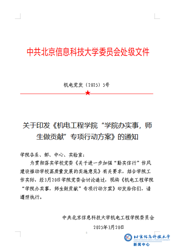 二是聚焦党建引领,凝聚三风育人合力。党校办统筹校级层面含为师生办实事,构建“充分调研-建立清单-协同攻坚-督查督办-效果评估”闭环机制,进一步办好事、办实事、解难题、促发展。党委组织部起草“双创”和加强基层党组织建设相关文件,并下发征求意见;发挥“勤信组工”作用,开设“勤实信行”报道专栏,通过策划报道、撰写评论文章等方式,拓展报道深度。党委宣传部完成小营校区建筑物、活动场地命名,以及校园指示牌和楼体标识牌制作;启动北京信息科技大学(张家口)道路命名、楼宇命名等有关工作,提升校园文化内涵,为师生营造良好的校园文化氛围。党委教师工作部开展“育人先锋”“师德标兵”评选;推出“青马风采”系列报道,挖掘青年教师育人典型,搭建展示平台,报道优秀育人事迹;同时启动“新晋导师启航计划”,“AI研习营”,邀请手把手带领新晋导师成长,打造专属教学工作流。党委学工部为充实春假安排、丰富假期选择,校院两级精心设计了系列研学项目,引导学生走进自然与社会大课堂,实现知行合一;依托信息科大版DeepSeekV3+R1大模型,打造24小时AI辅导员,用AI赋能学生教育、管理与服务水平。党委学工部联合国际交流处在“勤信学工”设置新专栏“国际范儿”,全面提升学生国际视野与国际化能力。校团委启动“青创北京”2025年“挑战杯”首都大学生课外学术科技作品竞赛,为师生解读竞赛政策,分享备赛经验。
